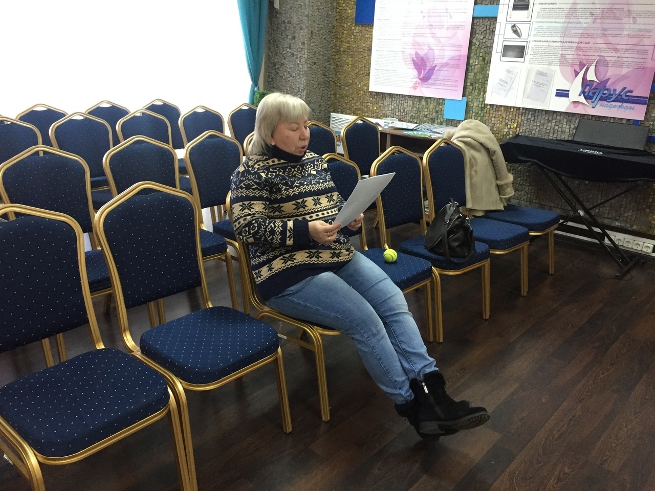 Из прошедших мероприятий очень понравилась встреча, где показывали, как делать речевую гимнастику. А еще запомнилась встреча с психологом, много полезного узнала, несмотря на то, что на сцене бываю часто. Ведь публика бывает разная. Иногда на сцене появляется барьер - страх забыть слова, страх не попасть в ноты. А психолог рассказала, как нужно себя вести. Среди методов, во-первых очень помогает, успокаивает и расслабляет гимнастика "вдох-выдох", во-вторых, нужно перед собой видеть все хорошее, а плохое оставлять позади, думать только о том, что несешь людям хорошие эмоции, а в-третьих - глаза должны быть поверх зала, тогда зрители думают, что смотрят на них, а на самом деле не видно других глаз и можно не отвлекаться.