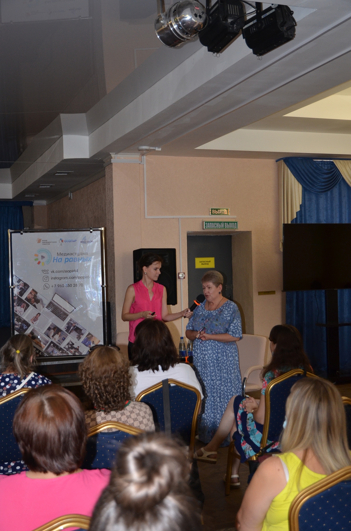 Екатерина Станиславовна, на правах хозяйки медиастудии, пригласила всех гостей к активному участию, напоминая, что именно от их включенности будет зависеть качество и уровень получаемого медиапродукта и то, насколько ярко проект продолжит жить дальше
