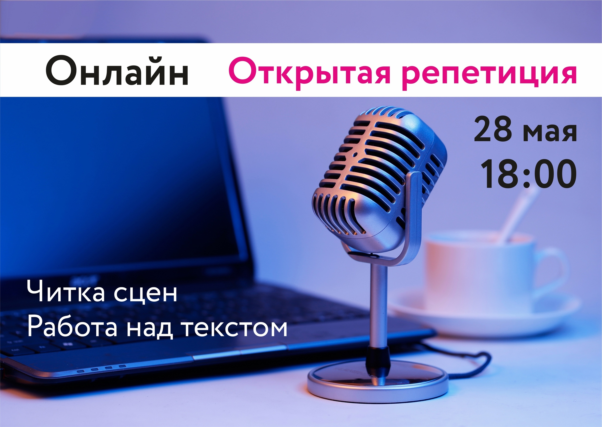 Наш режиссер и педагог Татьяна Павловна Чупикова вместе с участниками поговорит на тему "Читка сцен. Работа над текстом".