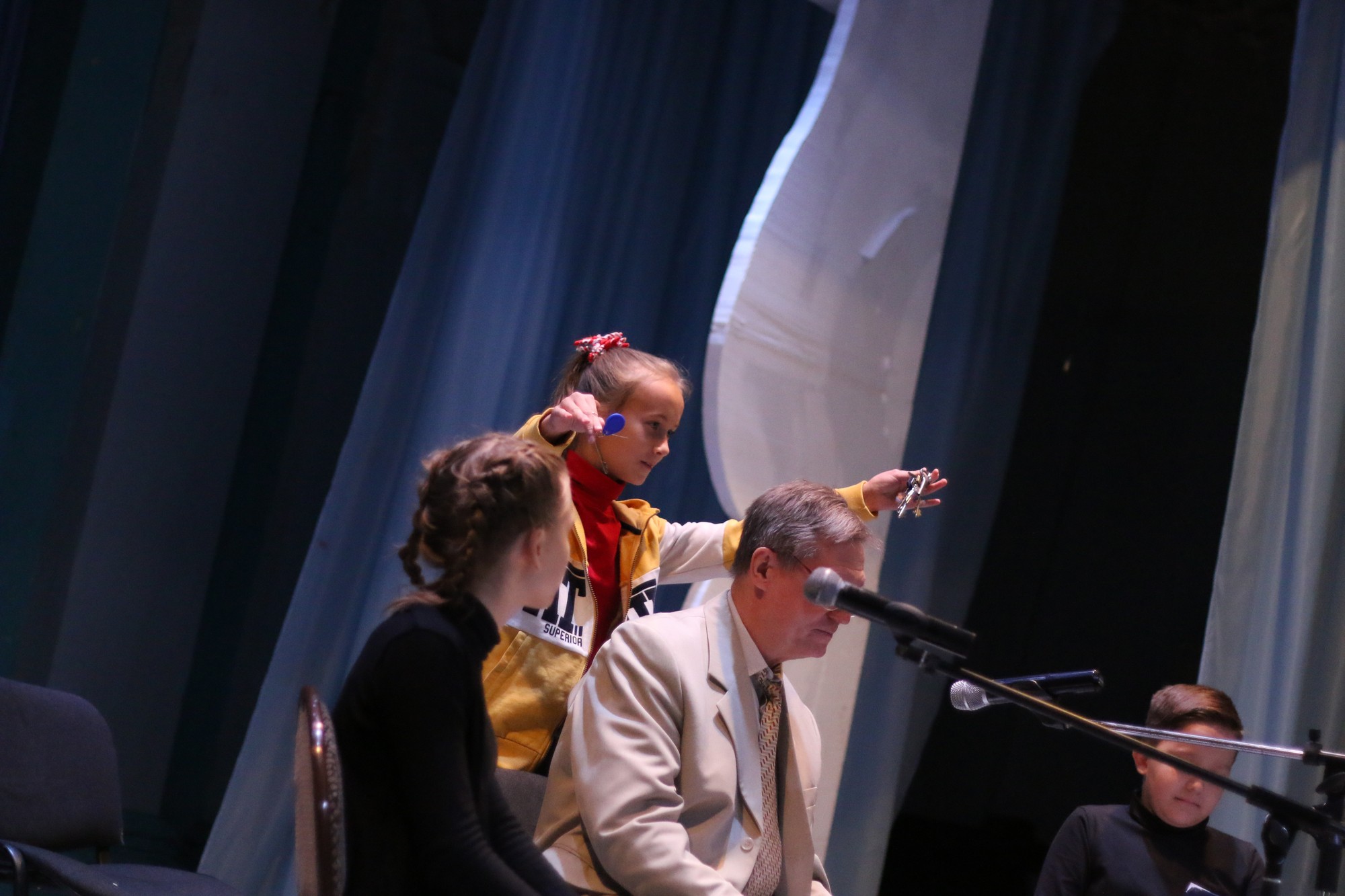 Наш проект позволяет встречаться в разных пространствах. В том числе и в интернете. Сначала мы репетировали в Zoom. Занятия проходили бурно и интересно. Важно было литературный текст заменить на сценическое действие. Это самое сложное. Потом работали перед микрофоном. А теперь - совершенно новая форма. Они читают в микрофон на сцене. Нужно быть заразительным. Нужно показать, как это делалось в звукозаписывающей студии.